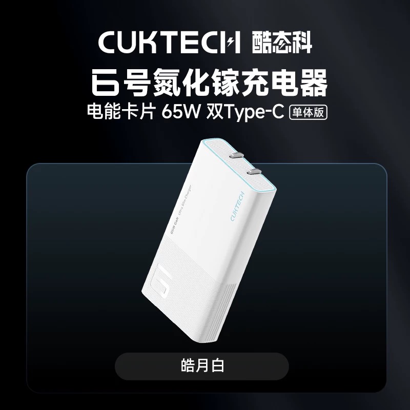 CUKTECH酷態(tài)科6號電能卡片PD65W超薄氮化鎵充電器適用于蘋果iPhone16小米三星便攜旅行手機(jī)平板筆記本適配器